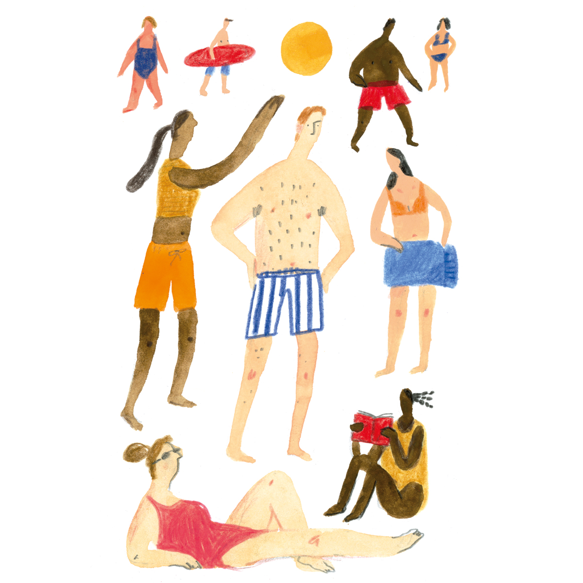 Series of illustrations depicting a day at the beach, which were printed in a small concertina book.