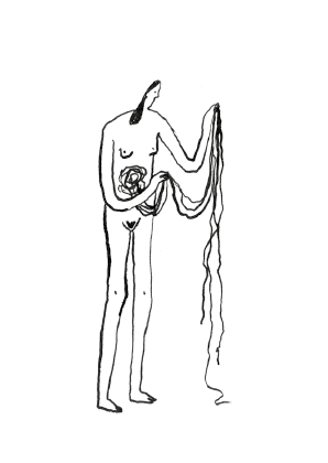 ‘Once more with feeling’ is a zine about feeling awkward and strange in your own body. It consists of a series of nib-pen drawings.