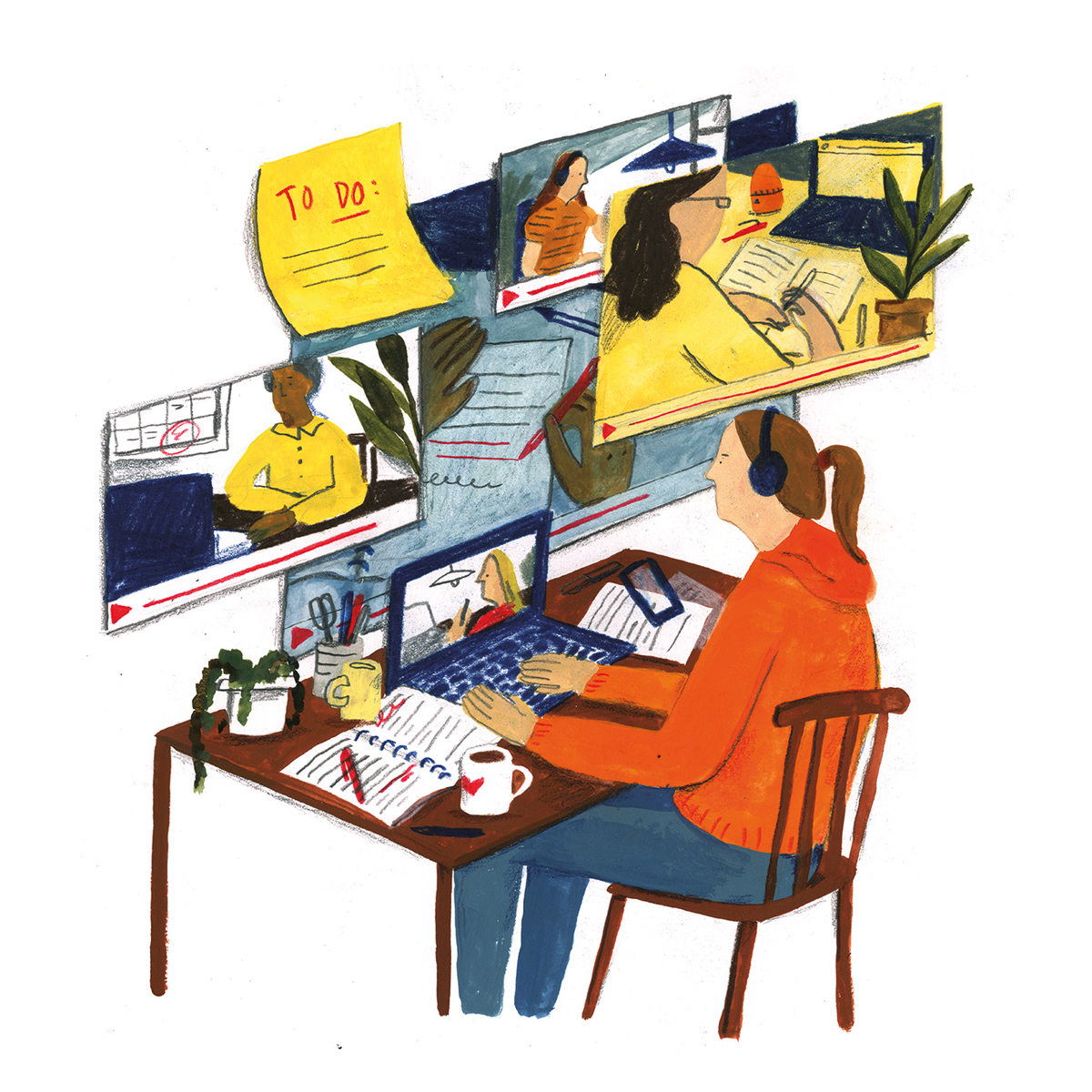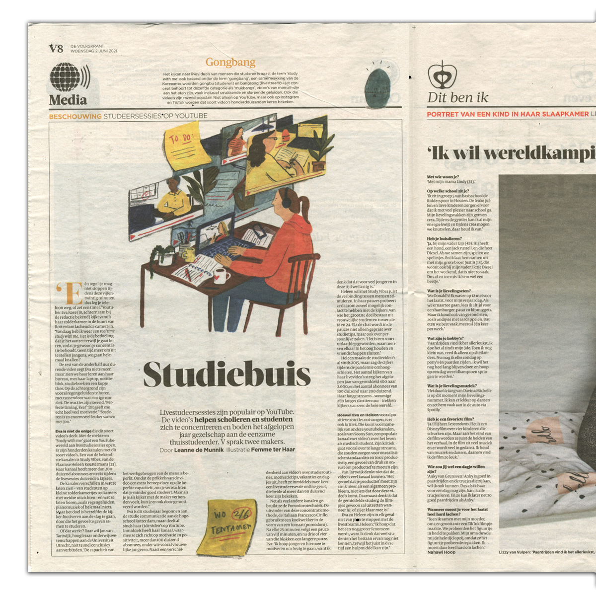 Illustration for an article about studying alone together, by using studystreams on youtube.